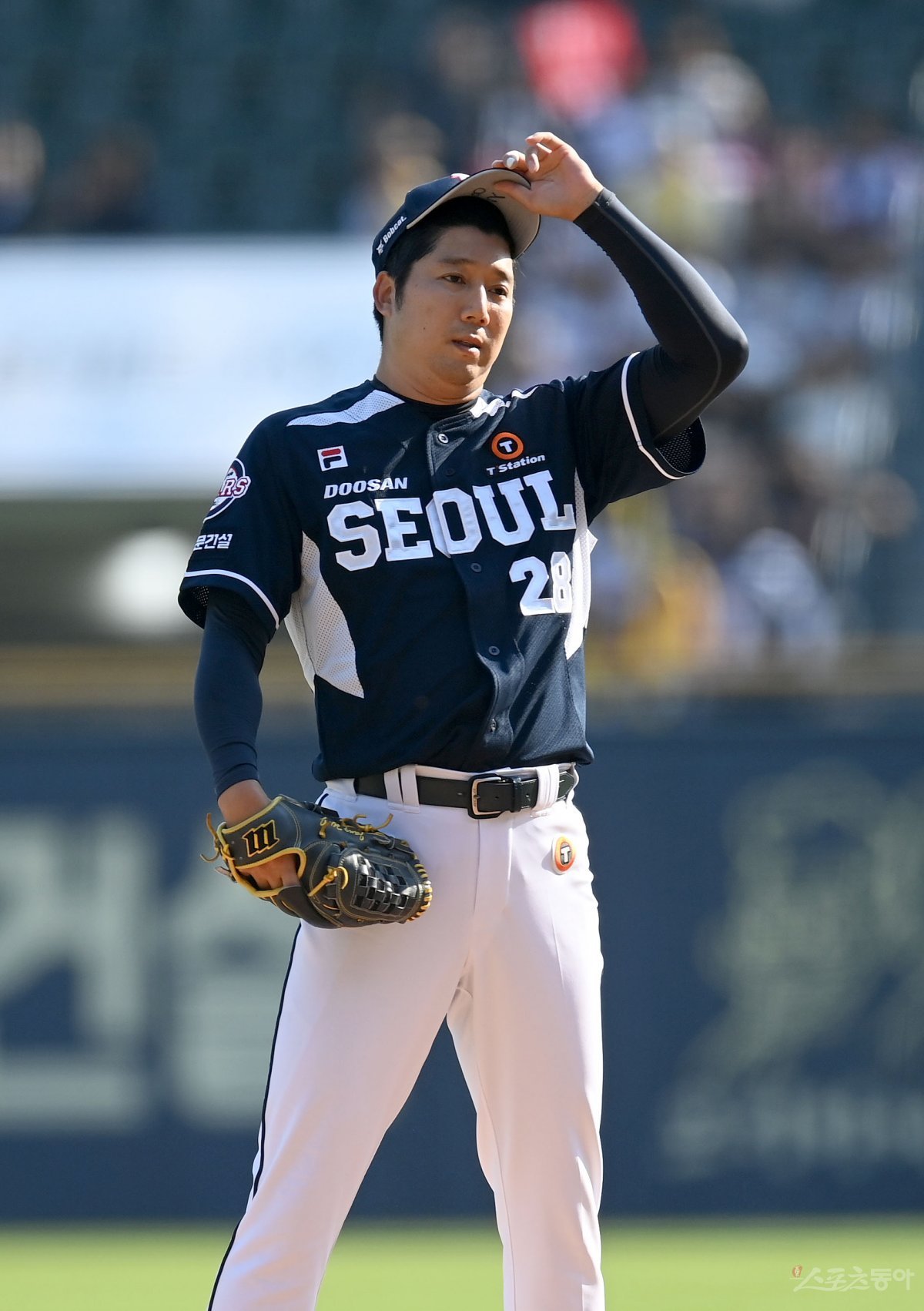 18일 서울 잠실야구장에서 ‘2023 신한은행 SOL KBO리그’ 두산 베어스와 LG 트윈스 경기가 열렸다. 선발 투수로 등판한 두산 장원준이 1회말 실점한 후 아쉬워하고 있다.