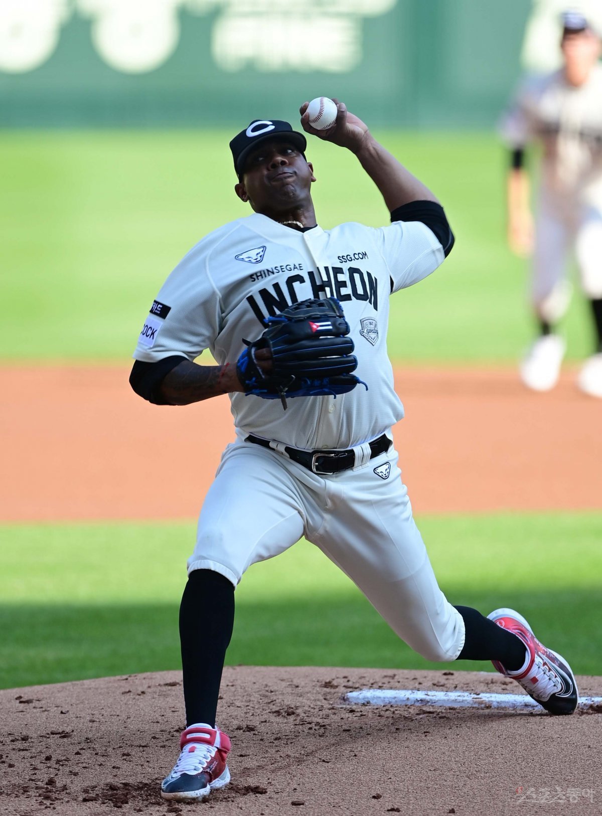 18일 인천 SSG랜더스필드에서 열린 ‘2023 신한은행 SOL KBO리그’ SSG 랜더스와 롯데 자이언츠의 경기에서 선발 투수로 마운드에 오른 SSG 엘리아스가 역투하고 있다.