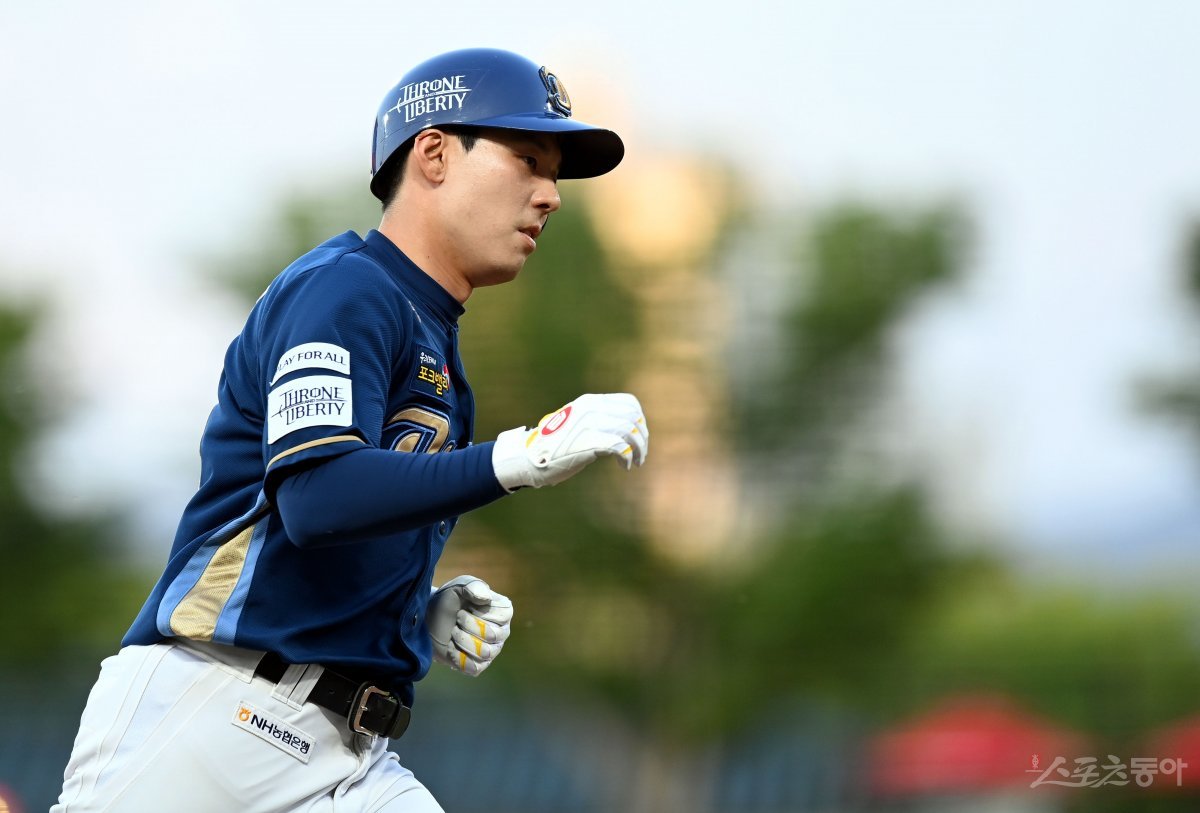 18일 광주기아챔피언스필드에서 ‘2023 신한은행 SOL KBO리그’ KIA 타이거즈와 NC 다이노스의 경기가 열렸다. 7회초 2사에서 NC 김성욱이 솔로 홈런을 쏘아 올린 후 그라운드를 돌고 있다.