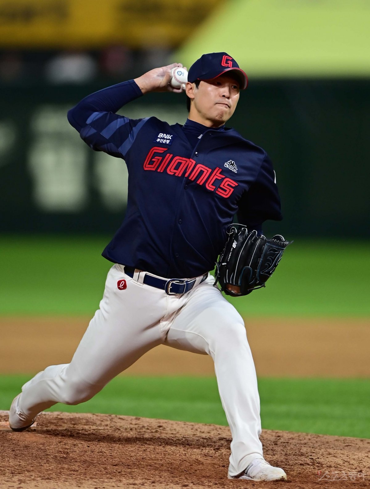 18일 인천 SSG랜더스필드에서 열린 ‘2023 신한은행 SOL KBO리그’ SSG 랜더스와 롯데 자이언츠의 경기에서 9회말 롯데 구승민이 교체로 마운드에 올라 역투하고 있다.