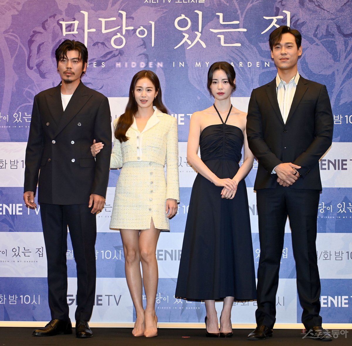 배우 김성오, 김태희, 임지연, 최재림이 19일 서울 마포구 스탠포드호텔에서 열린 지니 TV 오리지널 드라마 ‘마당이 있는 집’ 제작발표회에서 포토타임을 갖고 있다.