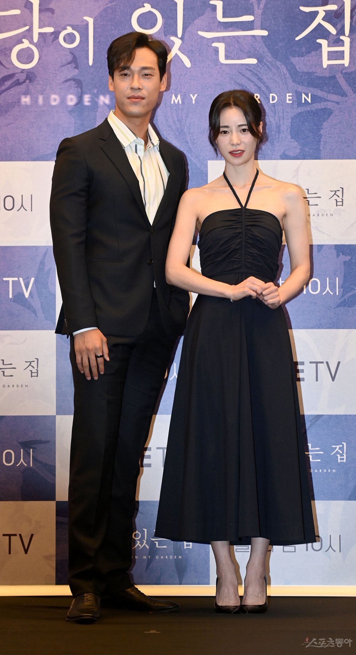 배우 최재림과 임지연이 19일 서울 마포구 스탠포드호텔에서 열린 지니 TV 오리지널 드라마 ‘마당이 있는 집’ 제작발표회에서 포토타임을 갖고 있다.