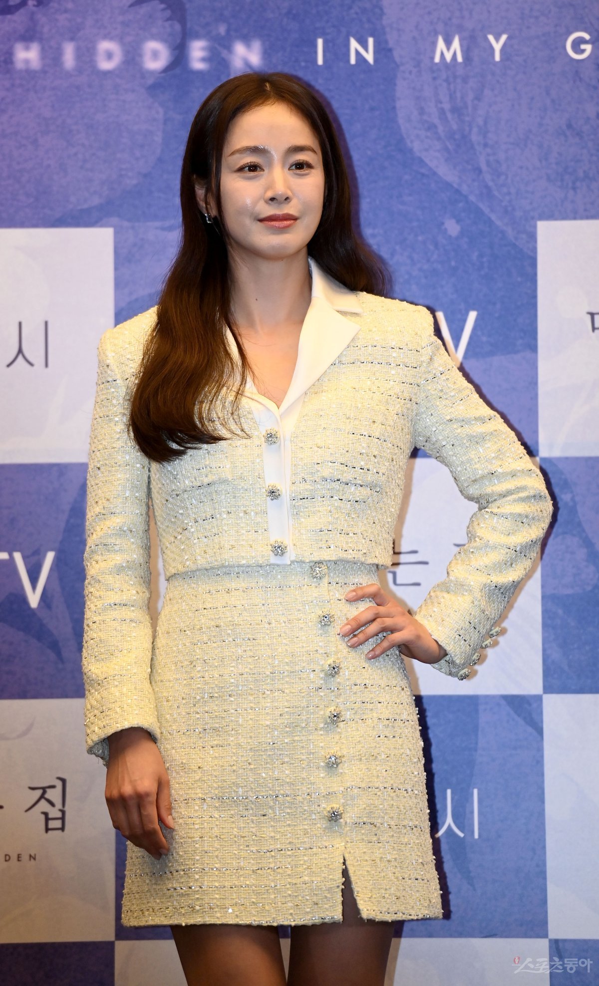 배우 김태희가 19일 서울 마포구 스탠포드호텔에서 열린 지니 TV 오리지널 드라마 ‘마당이 있는 집’ 제작발표회에서 포토타임을 갖고 있다.