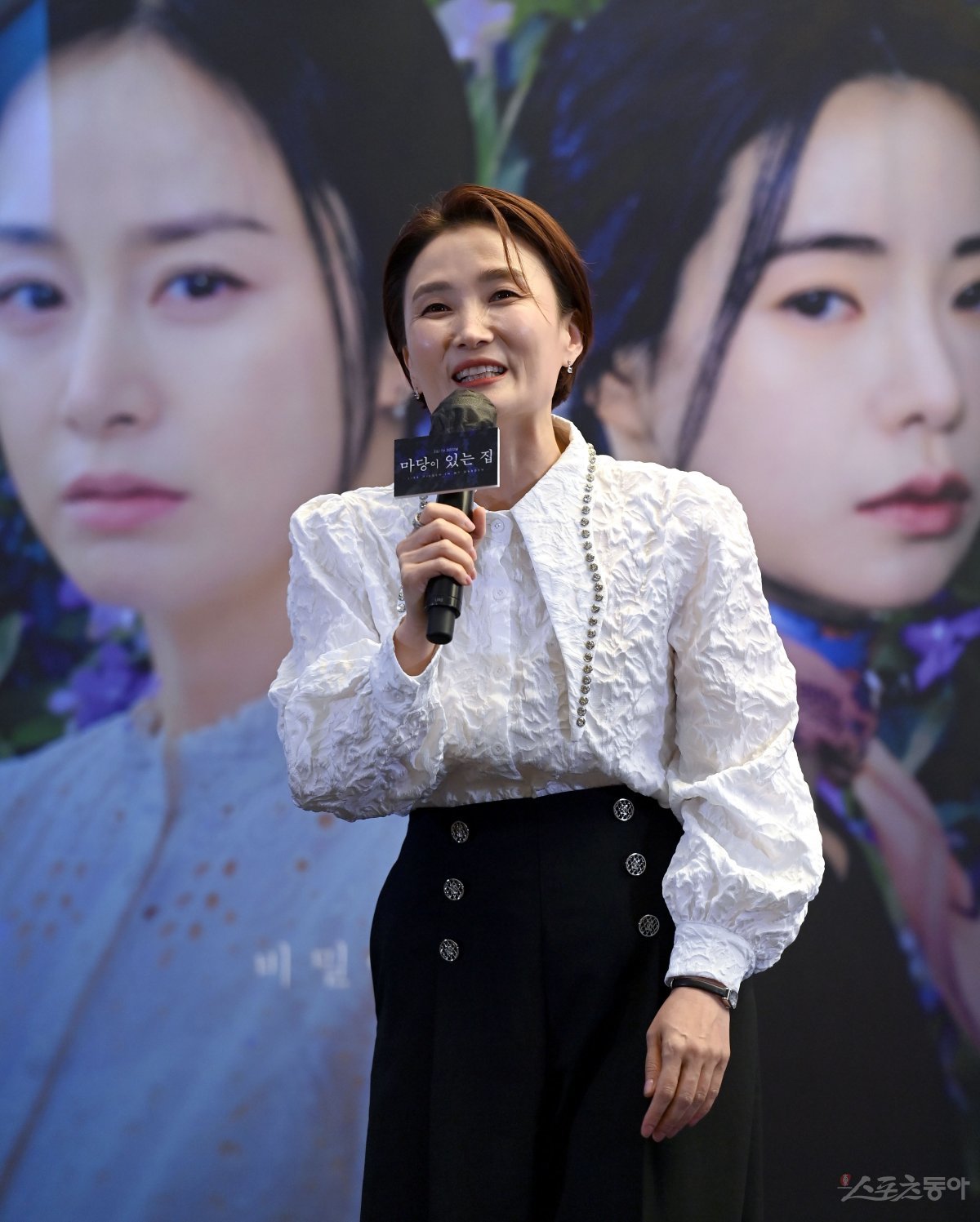방송인 박경림이 19일 서울 마포구 스탠포드호텔에서 열린 지니 TV 오리지널 드라마 ‘마당이 있는 집’ 제작발표회에서 사회를 보고 있다.