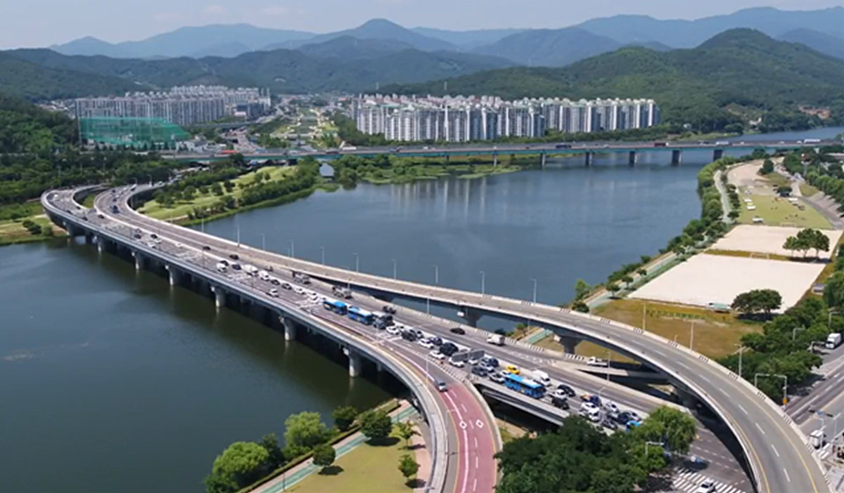 공사는 유통단지 방면 직진 2개 차로를 3개 차로로 확장하고, 유통단지 방면 직진 차량과 신천동로 방면의 우회전 차량을 완전히 분리해 통행할 수 있도록 개선했다.