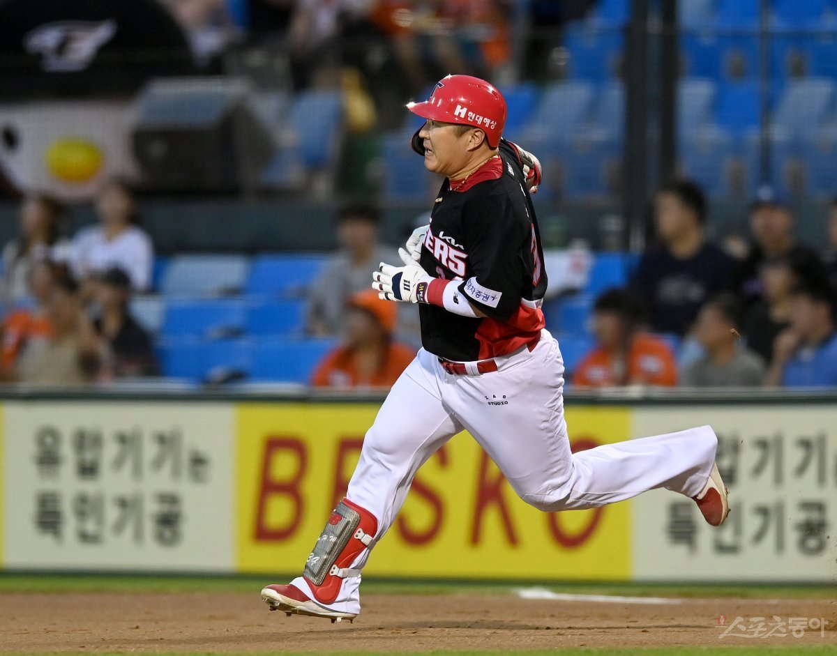 20일 대전 한화생명이글스파크에서 ‘2023 신한은행 SOL KBO리그’ KIA 타이거즈와 한화 이글스 경기가 열렸다. 4회초 1사 1루 KIA 최형우가 중월 투런 홈런을 날린 후 그라운드를 돌고 있다.