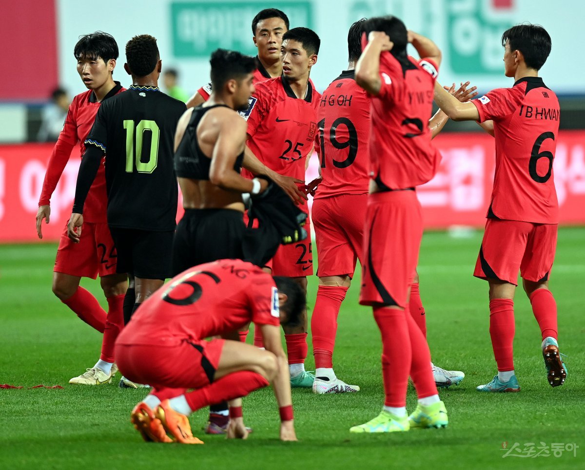 20일 대전월드컵경기장에서 열린 한국과 엘살바도르의 평가전 경기에서 한국이 엘살바도르와 무승부를 기록한 후 아쉬워하고 있다.