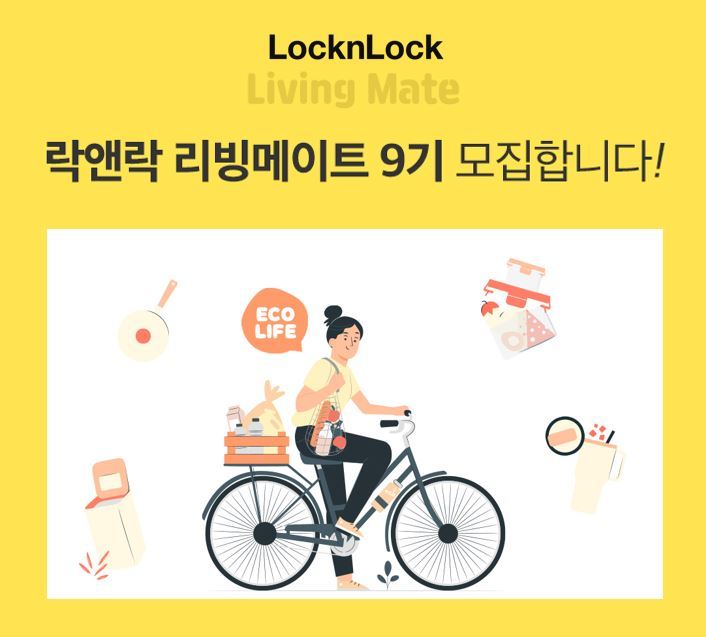 락앤락이 23일까지 리빙메이트 9기를 모집한다. 자사 제품의 다양한 활용 팁과 생활 노하우 등을 소개하는 락앤락 공식 서포터즈다. 락앤락몰 VIP등급 이상 통합 회원이면서 개인 SNS 채널을 운영하면 누구나 지원할 수 있다. 최종 선발자는 7∼12월 활동한다. 매월 자사 인기 제품을 제공하며, 본인만의 개성을 살려 락앤락몰과 개인 SNS에 제품 체험과 생활 꿀팁 등 다양한 콘텐츠를 게시하면 된다. 락앤락몰에서 상시 할인 혜택을 받을 수 있는 VVIP승급 혜택과 소정의 활동 적립금도 준다.