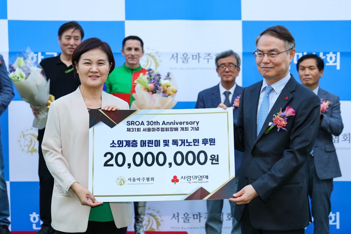 이날 시상식에는 서울마주협회 조용학 회장과 백국인 부회장, 조건진 홍보위원장, 한국마사회 정기환 회장이 참석했다. 시상식과 함께 ‘경마 선진화 30년, 마주들의 노블리스 오블리주 실천 30년’ 역사를 기념하는 사회공헌 행사도 열렸다. 서울마주협회는 총 4200만 원의 기부금 마련해 서울사회복지공동모금회에 2000만 원, 한국경마축산고등학교에 ‘SROA장학금’ 2200만 원과 장학증서를 각각 전달했다.