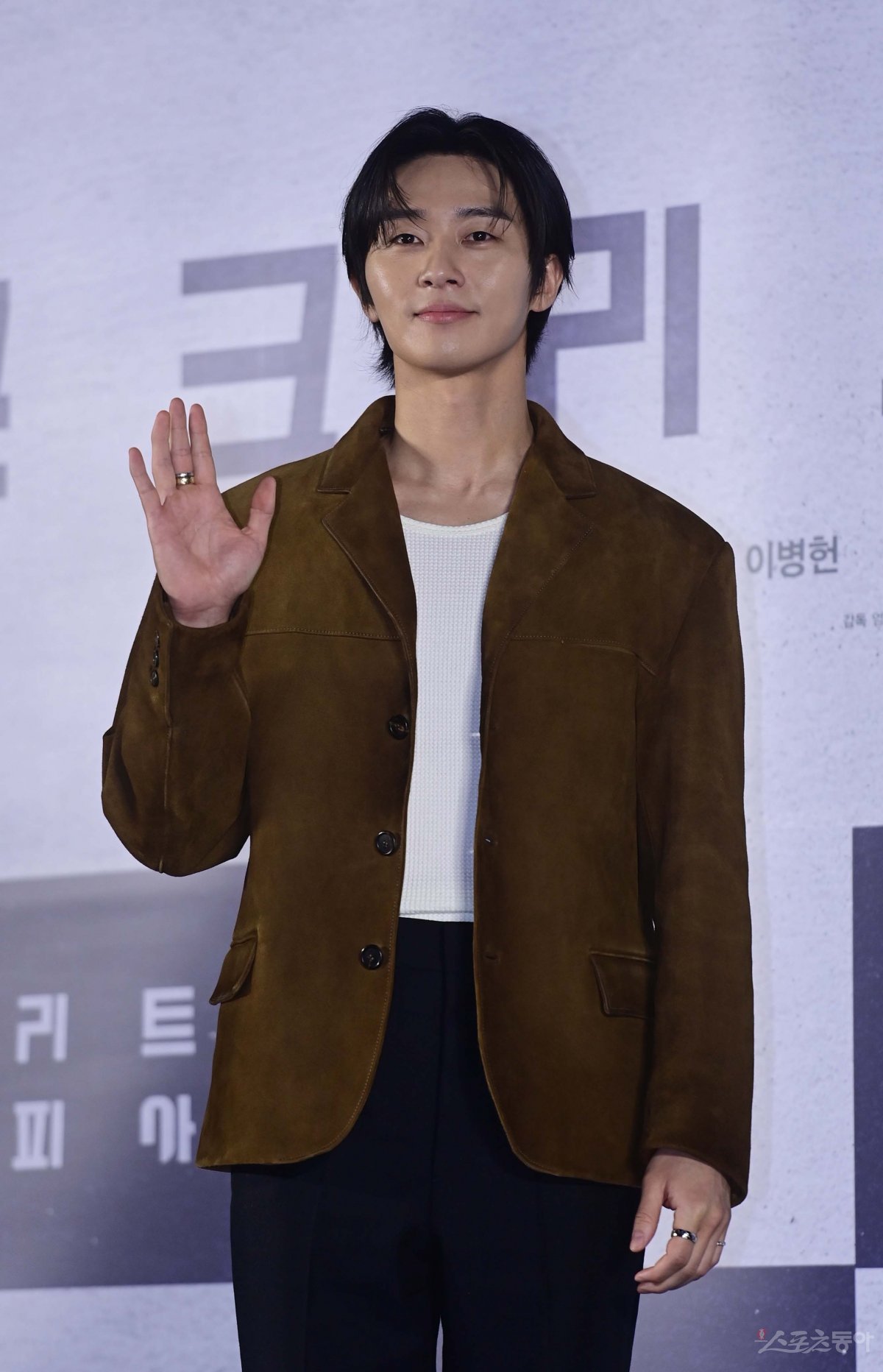 배우 박서준이 21일 서울 광진구 자양동 롯데시네마 건대입구점에서 열린 영화 ‘콘크리트 유토피아’ 제작보고회에서 포즈를 취하고 있다.