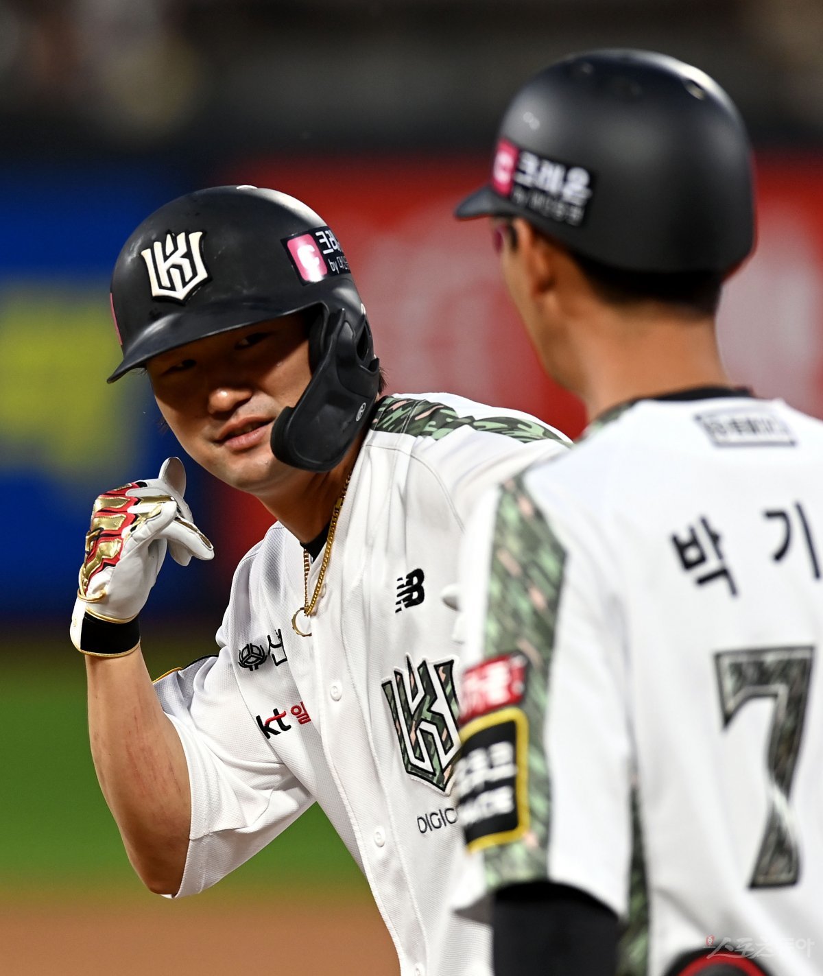 21일 경기도 수원 kt위즈파크에서 ‘2023 신한은행 SOL KBO리그’ kt 위즈와 롯데 자이언츠의 경기가 열렸다. 5회말 무사에서 kt 김상수가 안타를 날린 후 세리머니를 펼치고 있다.