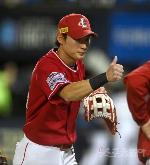 최지훈은 이 아쉬움을 자신의 손으로 직접 해소했다. 0-0으로 맞선 5회초 최준우, 추신수의 출루로 2사 1·2루 기회가 오자 1타점 2루타로 균형을 깼다. 두산 선발투수 최원준의 스트라이크존에 낮게 걸친 체인지업을 걷어내듯 공략해 우측 담장 앞까지 타구를 날려 보냈다.