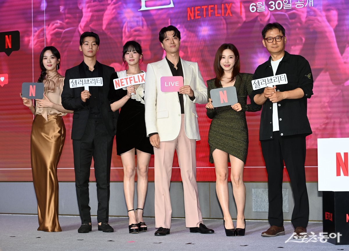 배우 이청아, 강민혁, 박규영, 이동건, 전효성, 김철규 감독이 26일 서울 마포구 호텔 나루 서울 엠갤러리에서 진행된 넷플릭스 오리지널 시리즈 ‘셀러브리티’ 제작발표회에서 포토타임을 갖고 있다.