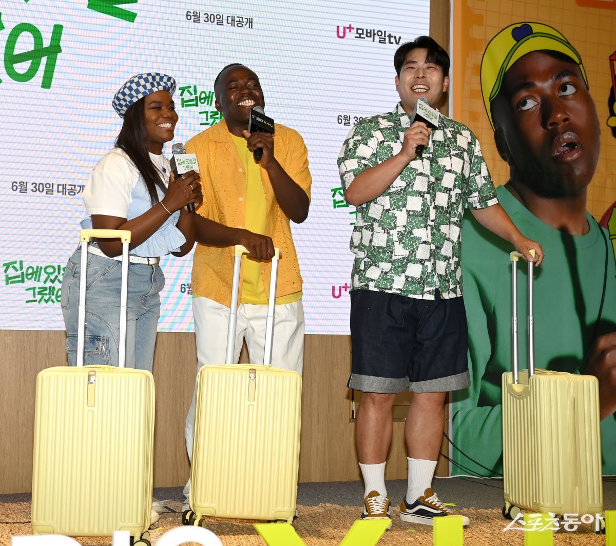 파트리샤, 조나단, 김해준이 26일 서울 용산구 LG유플러스 용산 사옥에서 진행된 예능 프로그래 ‘집에 있을걸 그랬어’ 제작발표회에서 포토타임을 갖고 있다.