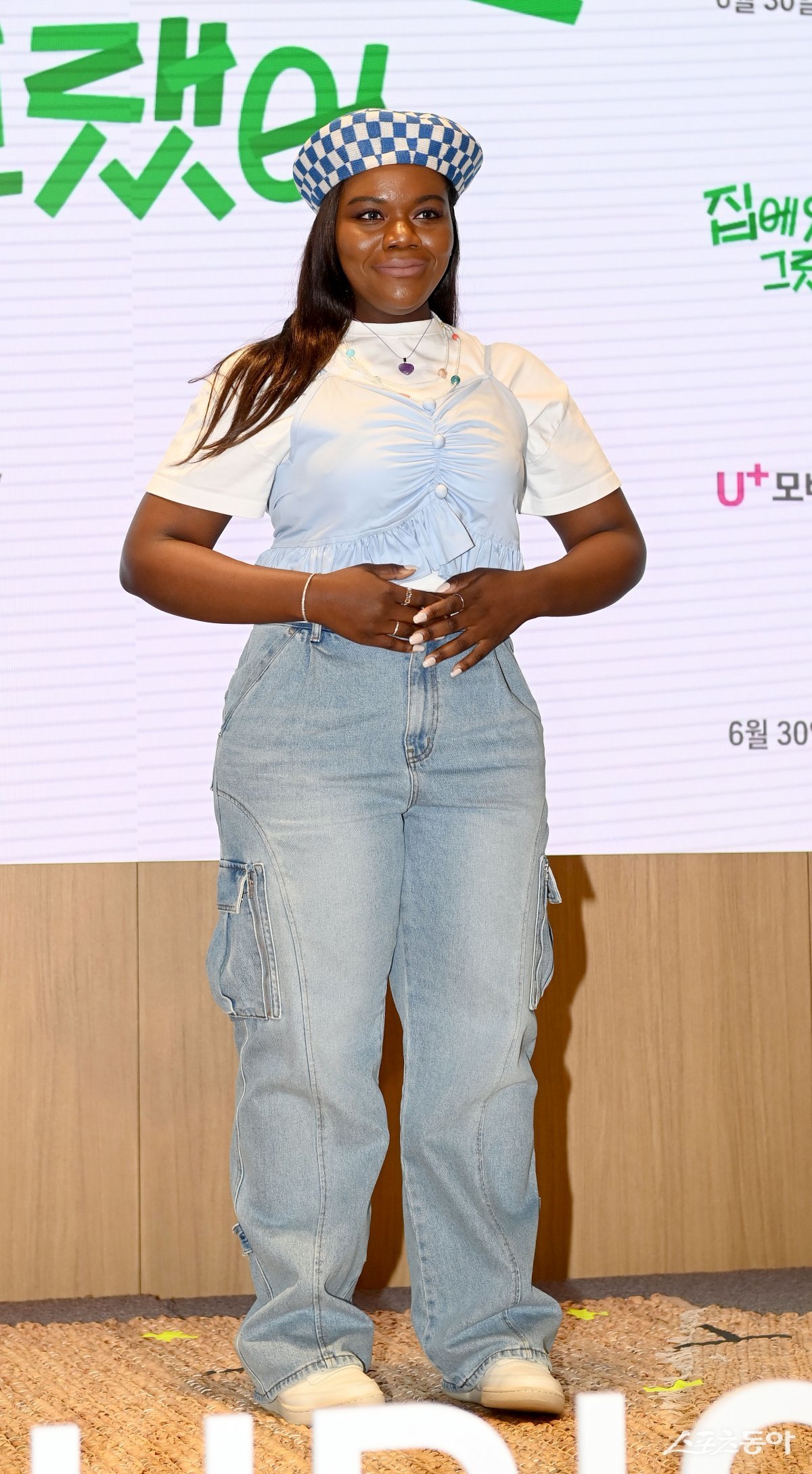 파트리샤가 26일 서울 용산구 LG유플러스 용산 사옥에서 진행된 예능 프로그래 ‘집에 있을걸 그랬어’ 제작발표회에서 포토타임을 갖고 있다.