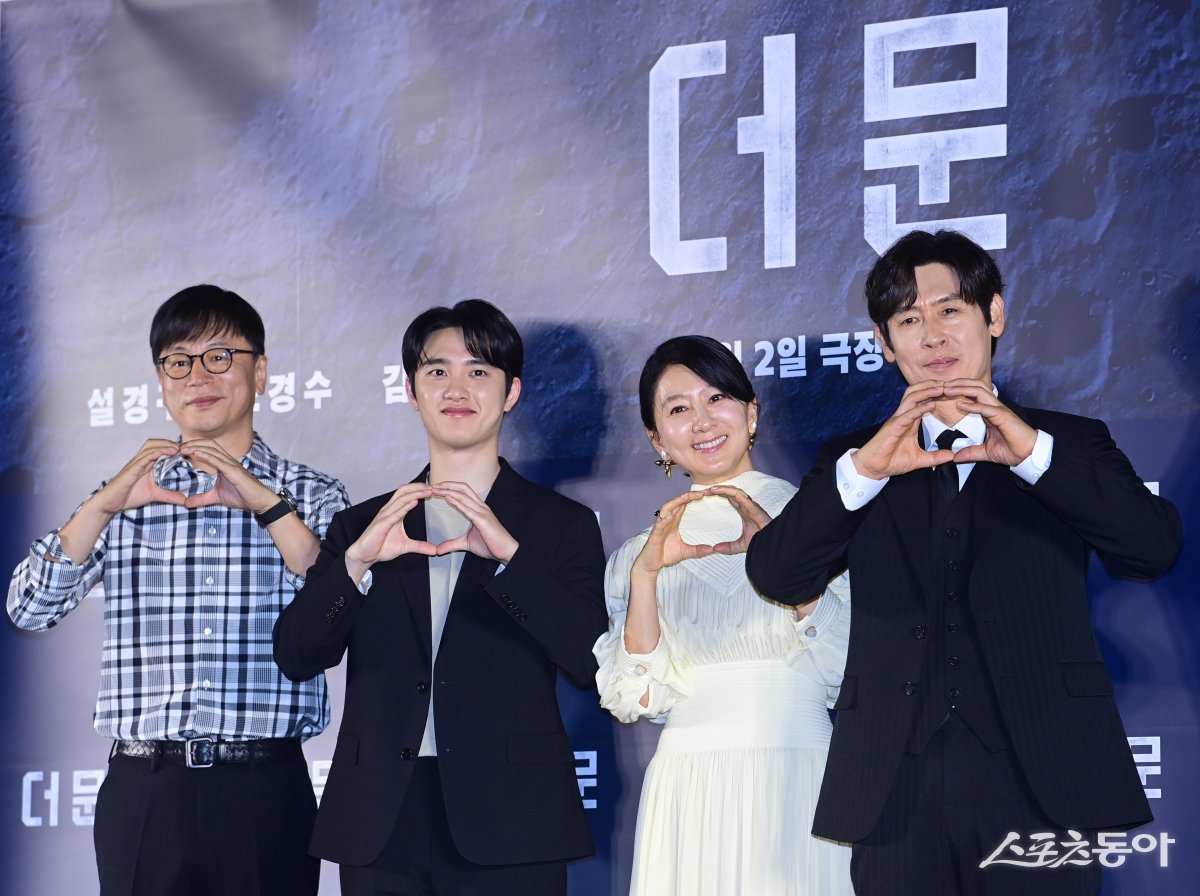 감독 김용화, 배우 도경수, 김희애, 설경구가 27일 서울 용산구 CGV용산아이파크몰점에서 열린 영화 ‘더 문’ 제작보고회에서 포즈를 취하고 있다.