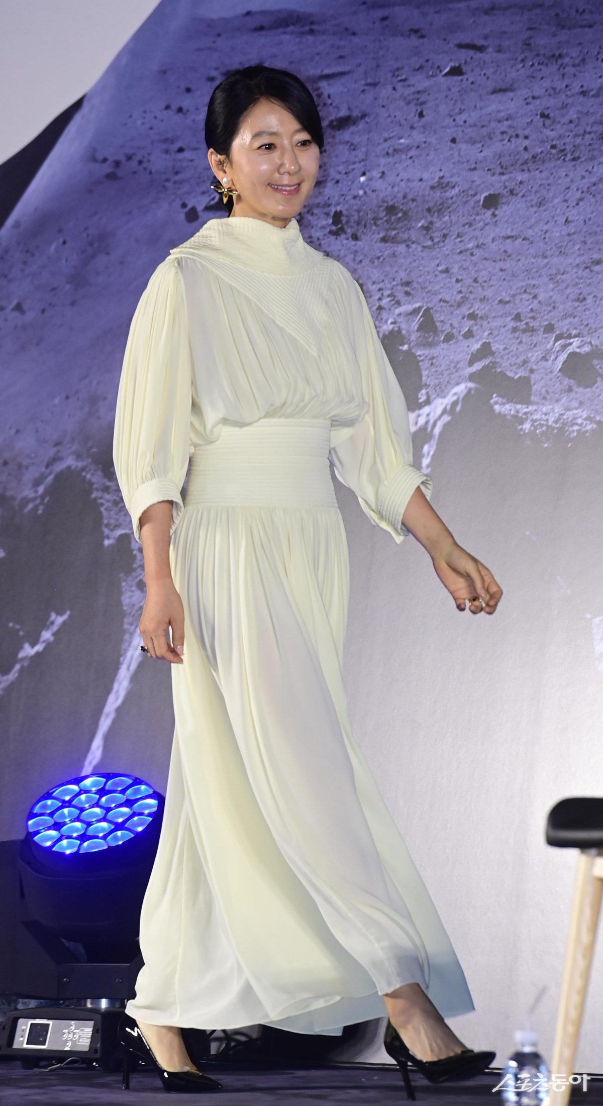 배우 김희애가 27일 서울 용산구 CGV용산아이파크몰점에서 열린 영화 ‘더 문’ 제작보고회 무대에 오르고 있다.