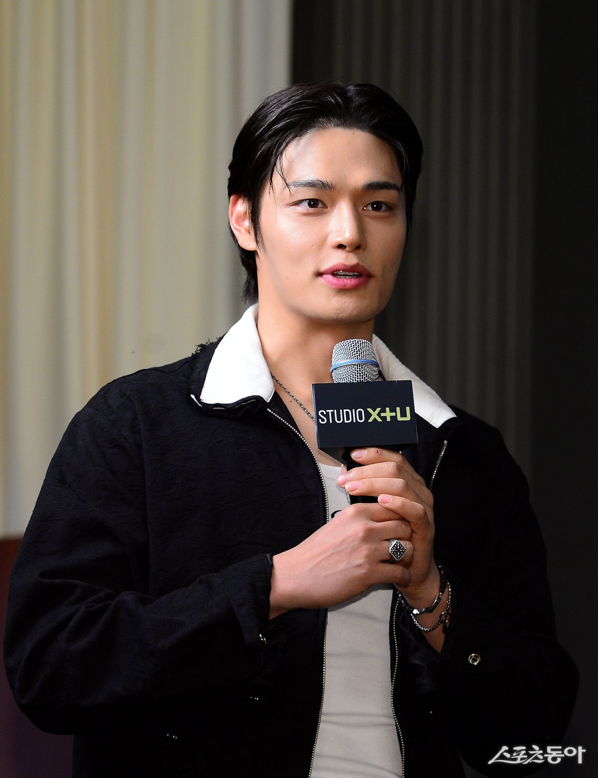 27일 서울 서초구 리버사이드호텔에서 열린 U+모바일tv 새 예능 ‘내편하자’ 기자 간담회에 참석한 정혁이 사회를 맡아 행사를 진행하고 있다.