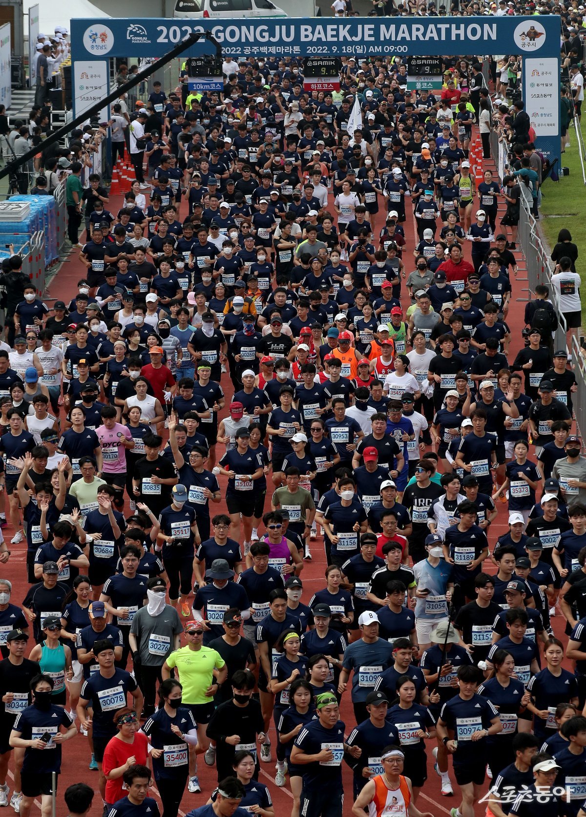 오는 9월17일 열리는 2023 공주백제마라톤대회 참가 신청이 28일(수) 오전 10시부터 동마클럽 홈페이지를 통해 받는다. 사진은 지난해 열린 2022 공주백제마라톤대회 마스터스 출발 모습. 스포츠동아DB