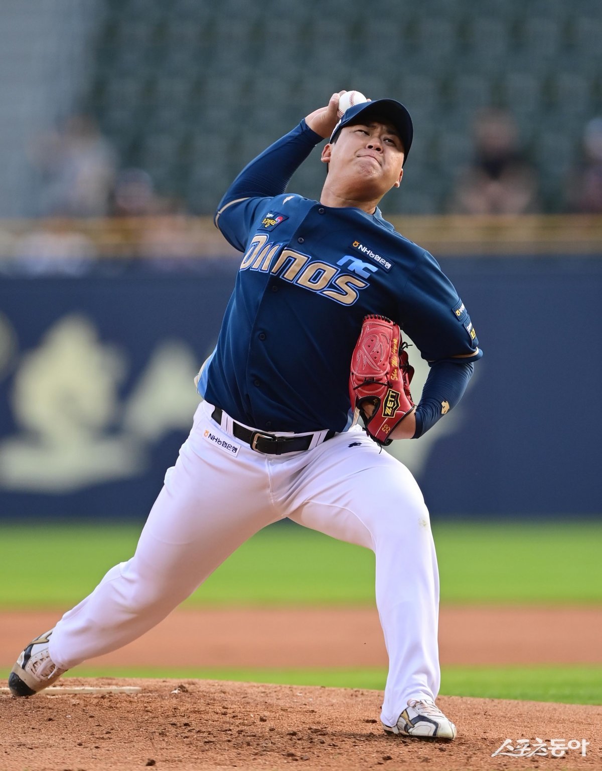 28일 서울 잠실야구장에서 열린 ‘2023 신한은행 SOL KBO리그’ 두산 베어스와 NC 다이노스의 경기에서 선발 투수로 마운드에 오른 NC 신민혁이 역투하고 있다.