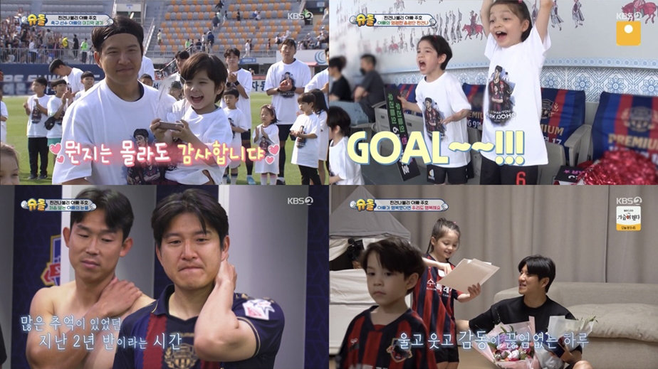 KBS2 ‘슈퍼맨이 돌아왔다’에서 축구 선수 박주호가 찐건나블리와 은퇴식을 함께하며 더욱 뭉클하고 감동적인 순간을 맞이했다.