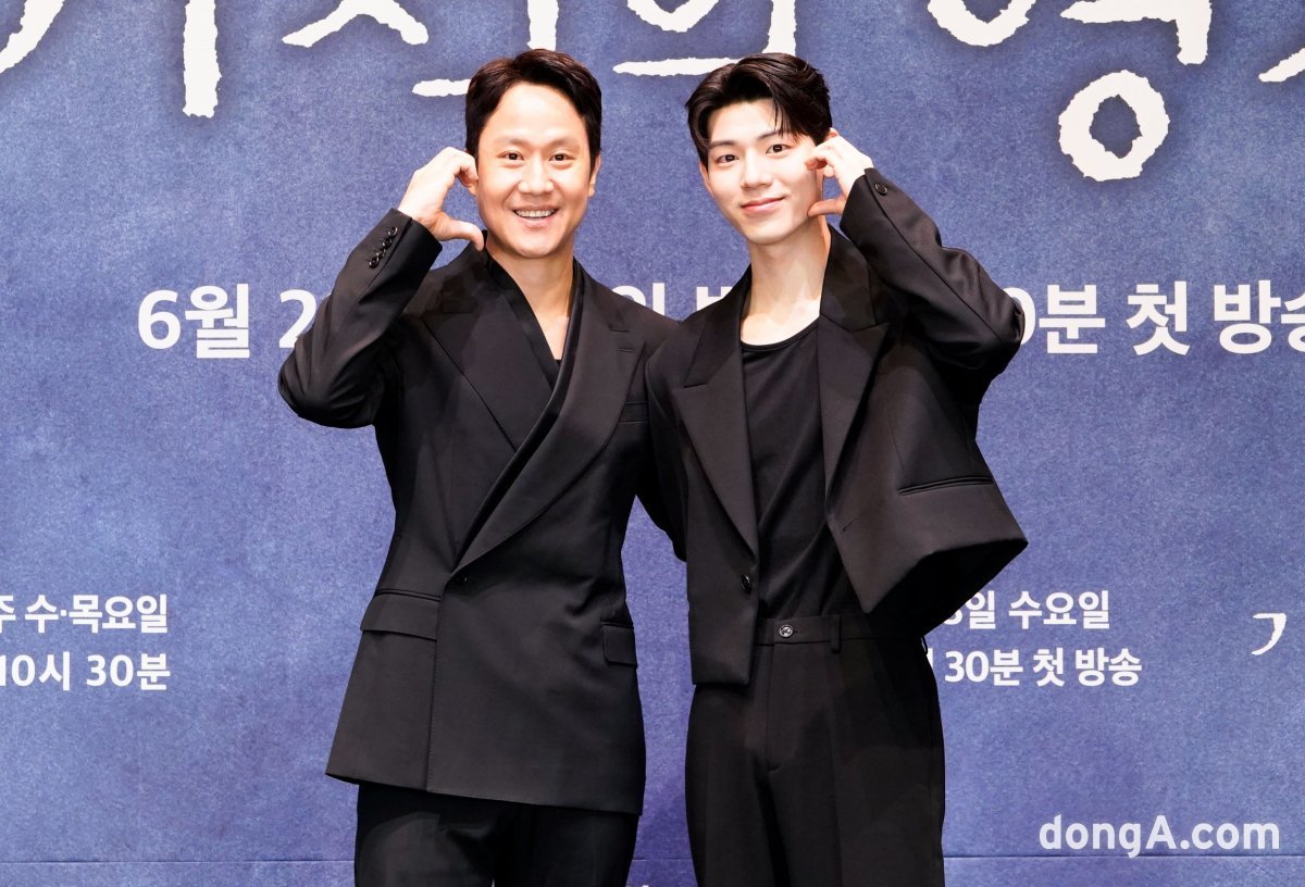 정우, 배현성이 28일 오후 온라인으로 생중계된 JTBC 새 수목드라마 ‘기적의 형제’(극본 김지우, 연출 박찬홍, 제작 MI, SLL) 제작발표회에서 포즈를 취하고 있다.
