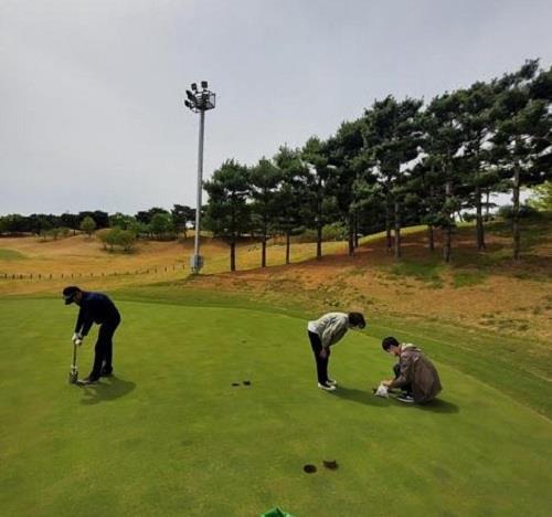 경기도보건환경연구원 직원들이 골프장에서 잔류농약 시료를 채취하고 있다. 사진제공|경기도보건환경연구원