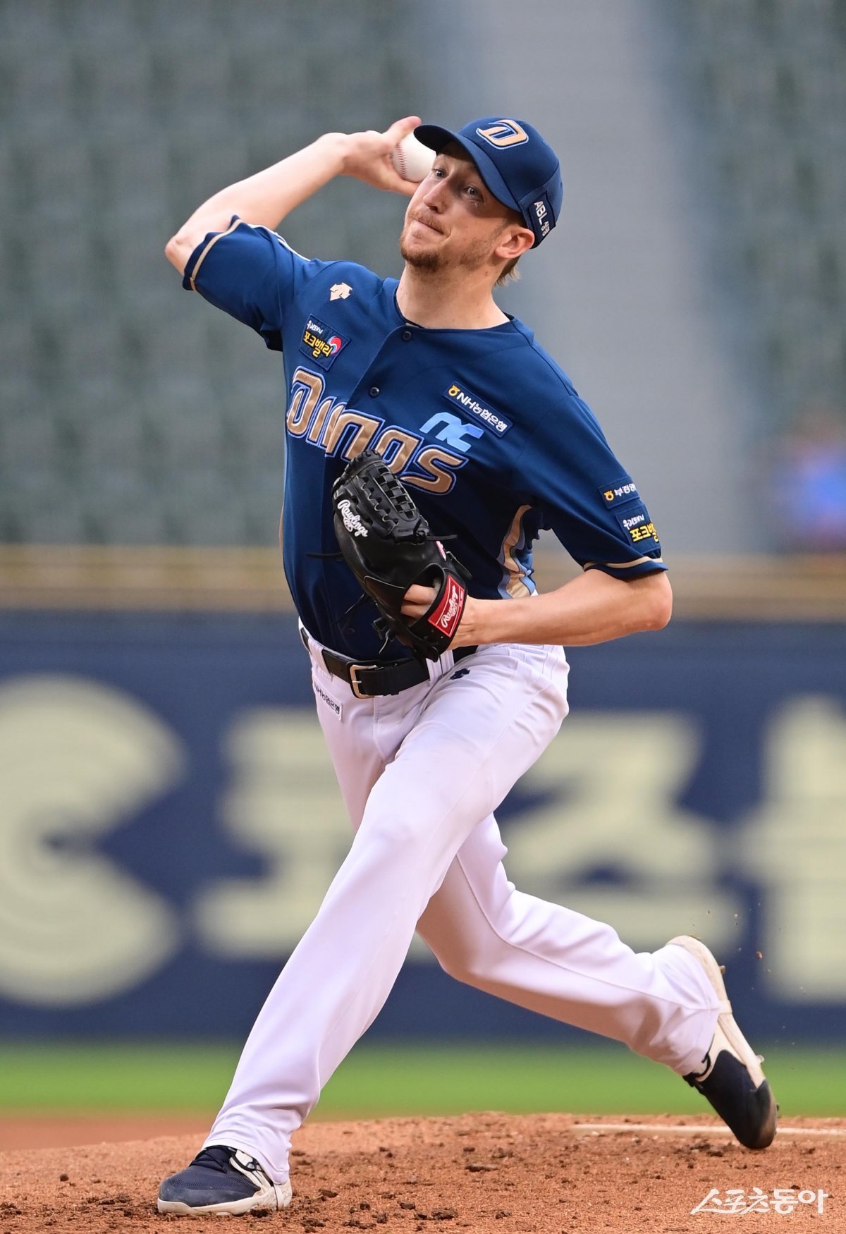 28일 서울 잠실야구장에서 열린 ‘2023 신한은행 SOL KBO리그’ 두산 베어스와 NC 다이노스의 경기에서 선발 투수로 마운드에 오른 NC 페디가 역투하고 있다.