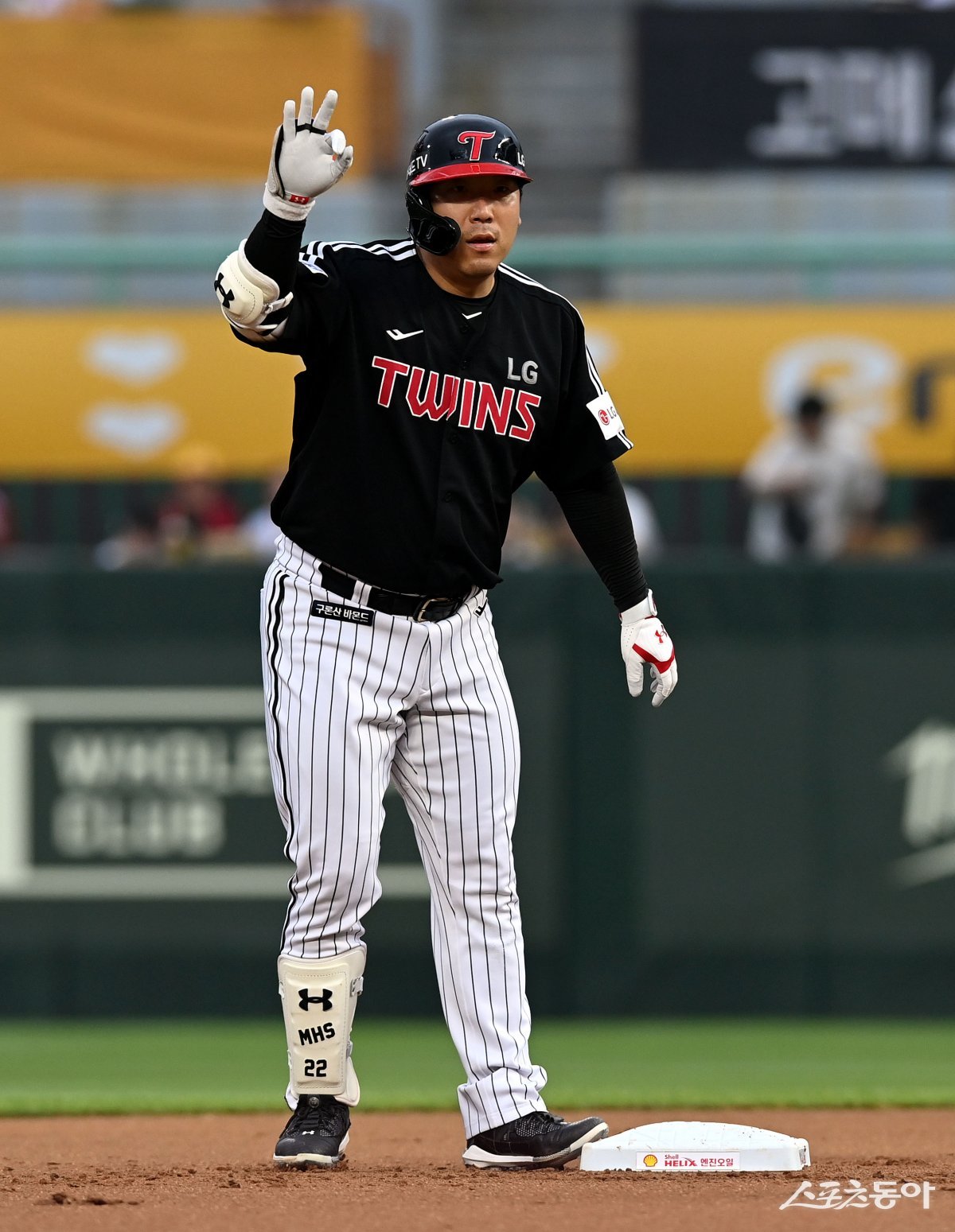 28일 인천 SSG 랜더스필드에서 ‘2023 신한은행 SOL KBO리그’ SSG 랜더스와 LG 트윈스의 경기가 열렸다. 1회초 1사 3루에서 LG 김현수가 1타점 2루타를 날린 후 세리머니를 펼치고 있다.