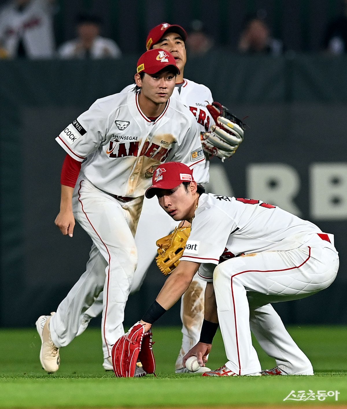 28일 인천 SSG 랜더스필드에서 ‘2023 신한은행 SOL KBO리그’ SSG 랜더스와 LG 트윈스의 경기가 열렸다. 9회초 1사 2루에서 SSG 최지훈이 안타성 타구를 잡으려다 놓친 후 아쉬워하고 있다.