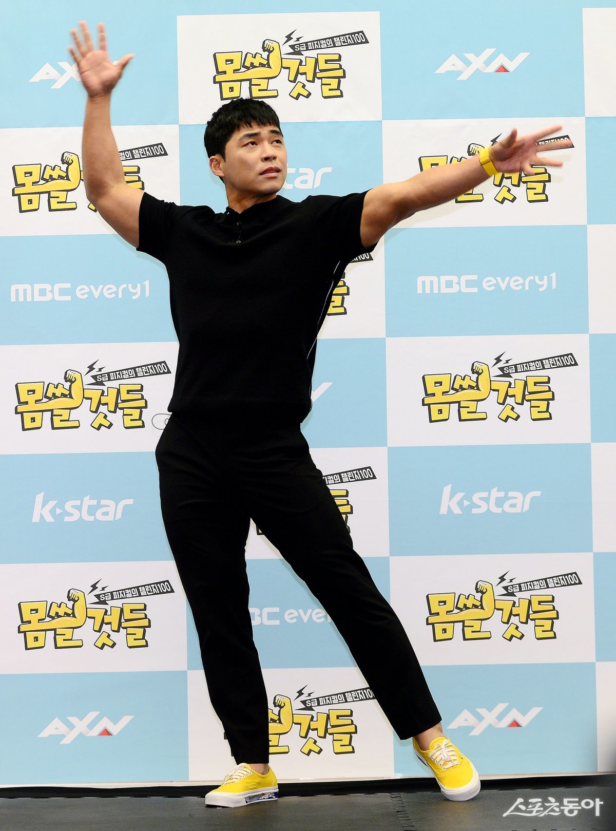 29일 서울 마포구 스탠포드호텔에서 AXN·Kstar·MBC에브리원 예능 ‘몸쓸것들:S급 피지컬의 챌린지 100’ 제작발표회에 참석한 마선호가 카메라를 향해 포즈를 취하고 있다.