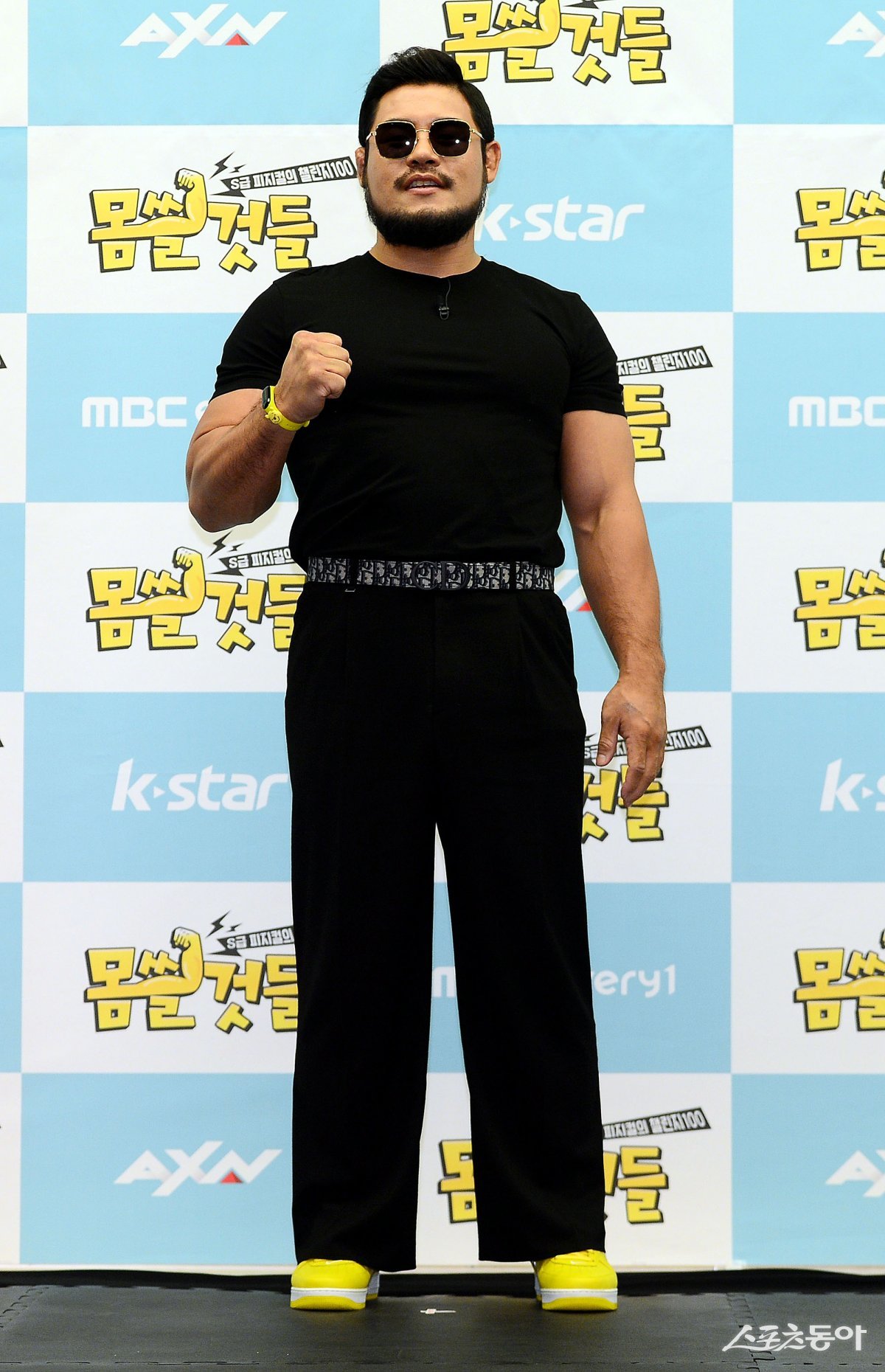 29일 서울 마포구 스탠포드호텔에서 AXN·Kstar·MBC에브리원 예능 ‘몸쓸것들:S급 피지컬의 챌린지 100’ 제작발표회에 참석한 남경진이 카메라를 향해 포즈를 취하고 있다.