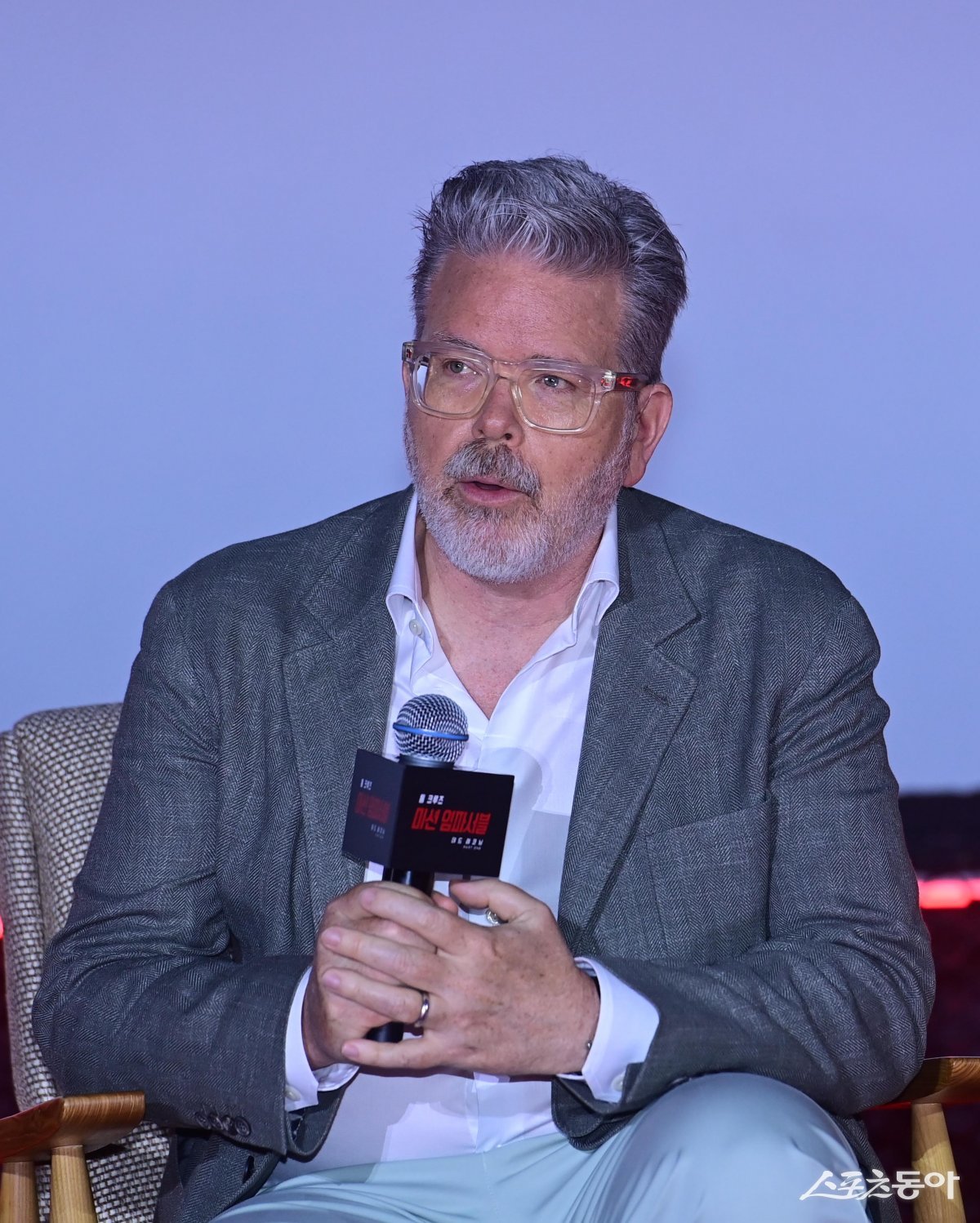 감독 크리스토퍼 맥쿼리가 29일 서울 송파구 신천동 롯데시네마 월드타워점에서 열린 영화 ‘미션 임파서블: 데드 레코닝 PART ONE’ 내한 프레스 컨퍼런스에서 진행자의 질문에 답하고 있다.