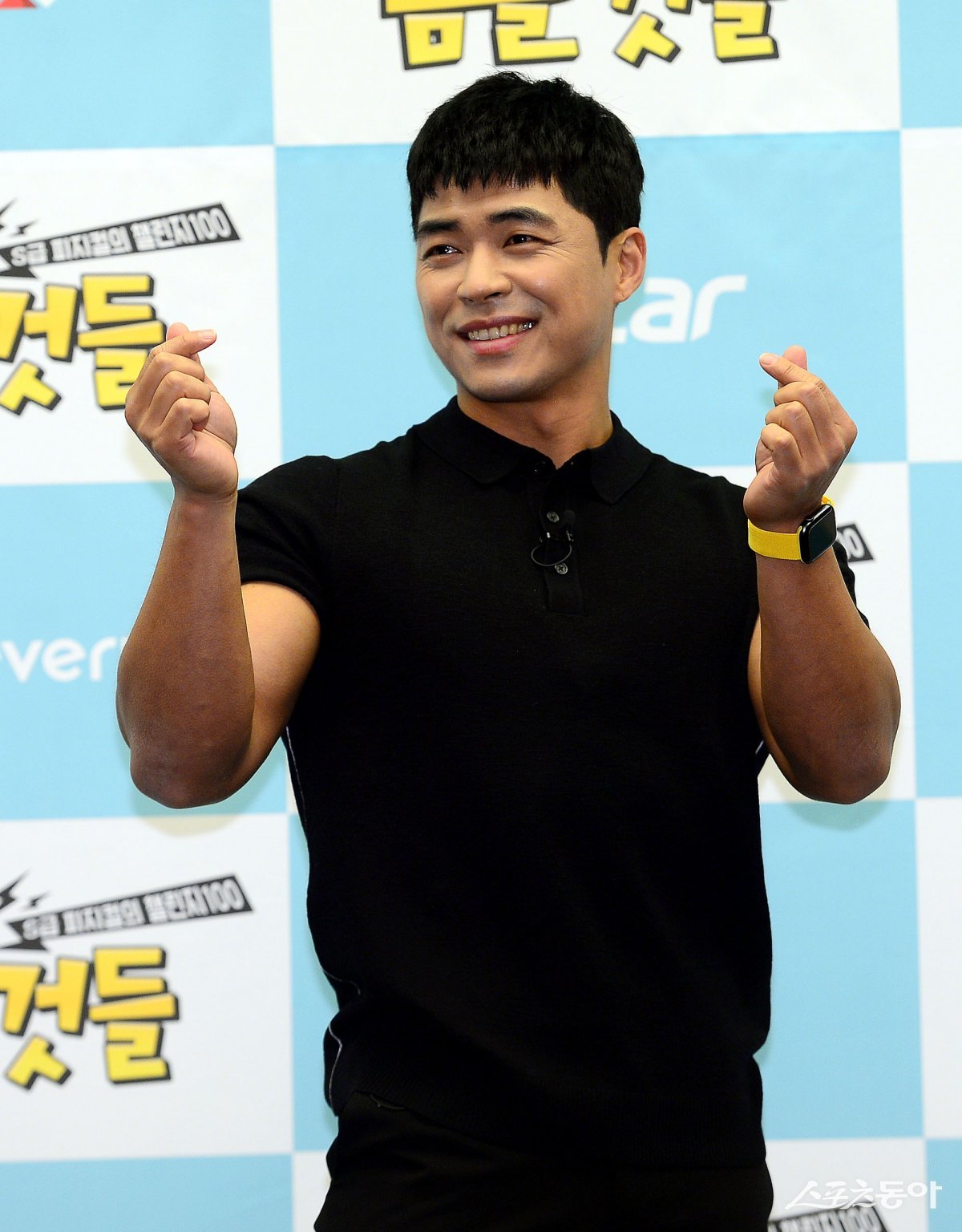 29일 서울 마포구 스탠포드호텔에서 AXN·Kstar·MBC에브리원 예능 ‘몸쓸것들:S급 피지컬의 챌린지 100’ 제작발표회에 참석한 마선호가 카메라를 향해 포즈를 취하고 있다.