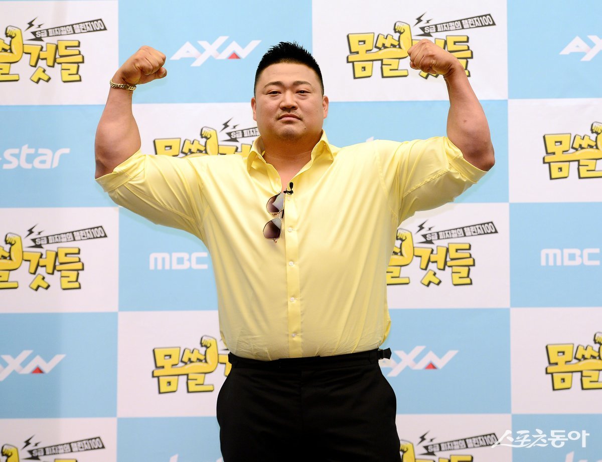 29일 서울 마포구 스탠포드호텔에서 AXN·Kstar·MBC에브리원 예능 ‘몸쓸것들:S급 피지컬의 챌린지 100’ 제작발표회에 참석한 조진형이 카메라를 향해 포즈를 취하고 있다.