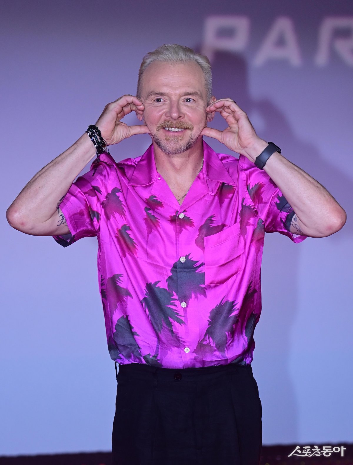 배우 사이먼 페그가 29일 서울 송파구 신천동 롯데시네마 월드타워점에서 열린 영화 ‘미션 임파서블: 데드 레코닝 PART ONE’ 내한 프레스 컨퍼런스에서 포즈를 취하고 있다.
