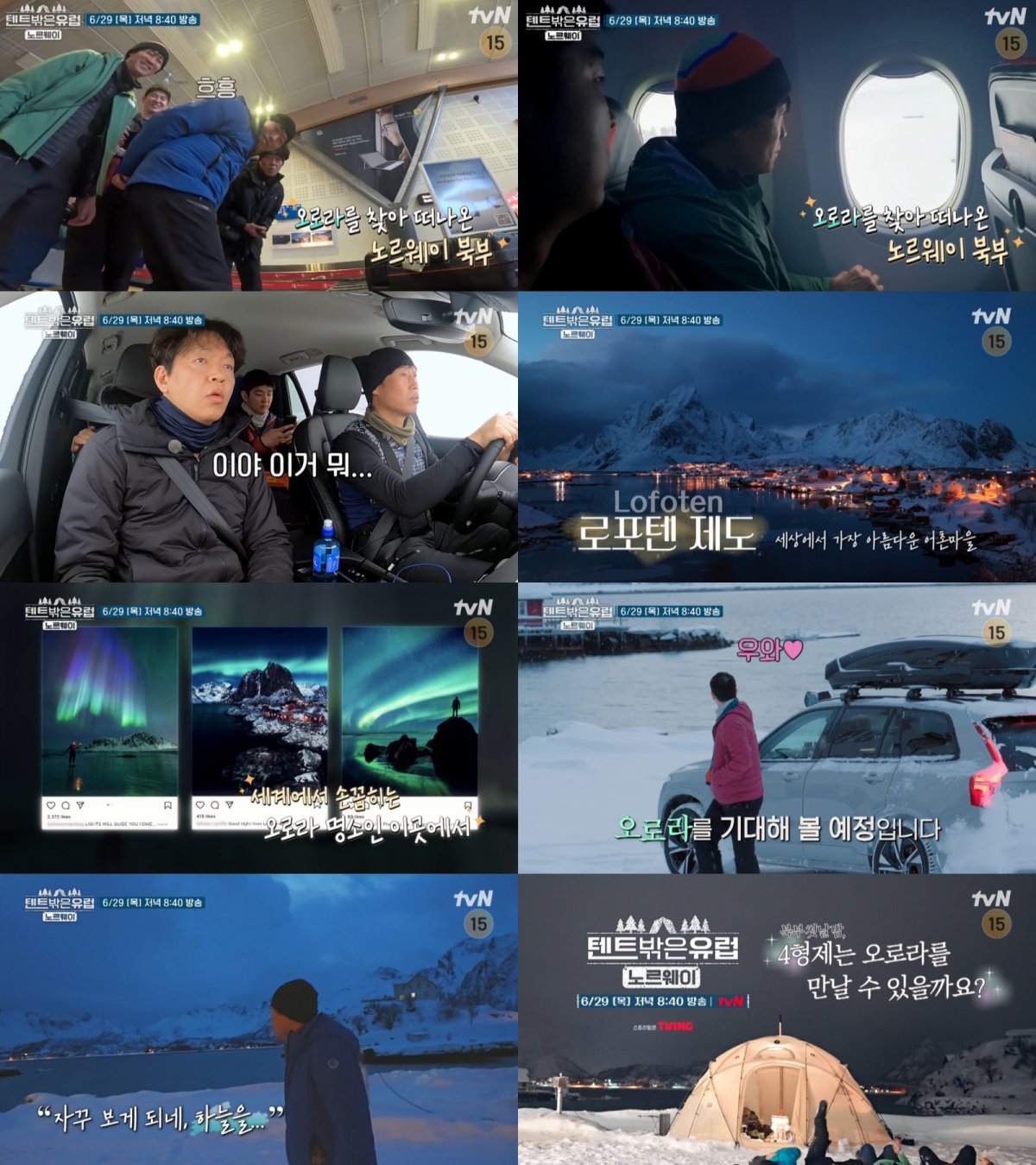 29일 tvN 예능 \'텐트 밖은 유럽 - 노르웨이 편\'에선 4형제의 인생 버킷리스트, 오로라를 향한 여정이 그려진다.