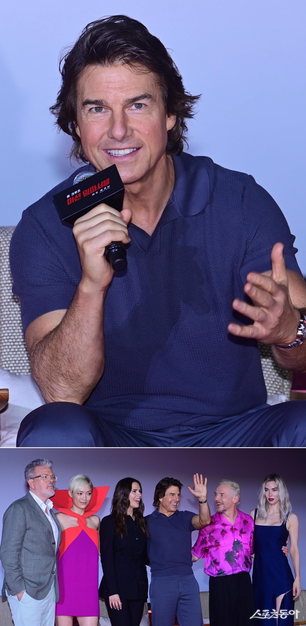 7월 12일 개봉하는 영화는 액션 블록버스터 ‘미션 임파서블’ 시리즈의 일곱 번째 영화로 인류를 위협할 무기가 악의 세력에 넘어가지 않도록 추적하던 에단 헌트(톰 크루즈)가 강력한 적을 마주하면서 벌어지는 일을 그린다. 톰 크루즈는 29일 서울 송파구 롯데시네마 월드타워점에서 열린 기자간담회에서 한국 팬들에 대한 남다른 애정을 감추지 않았다. 특히 한국 팬들이 지어준 ‘친절한 톰 아저씨’라는 별명을 언급하며 “정말 사랑하고 자랑스러운 별명이다. 나는 한국을 너무나 사랑한다”며 힘줘 말했다.
