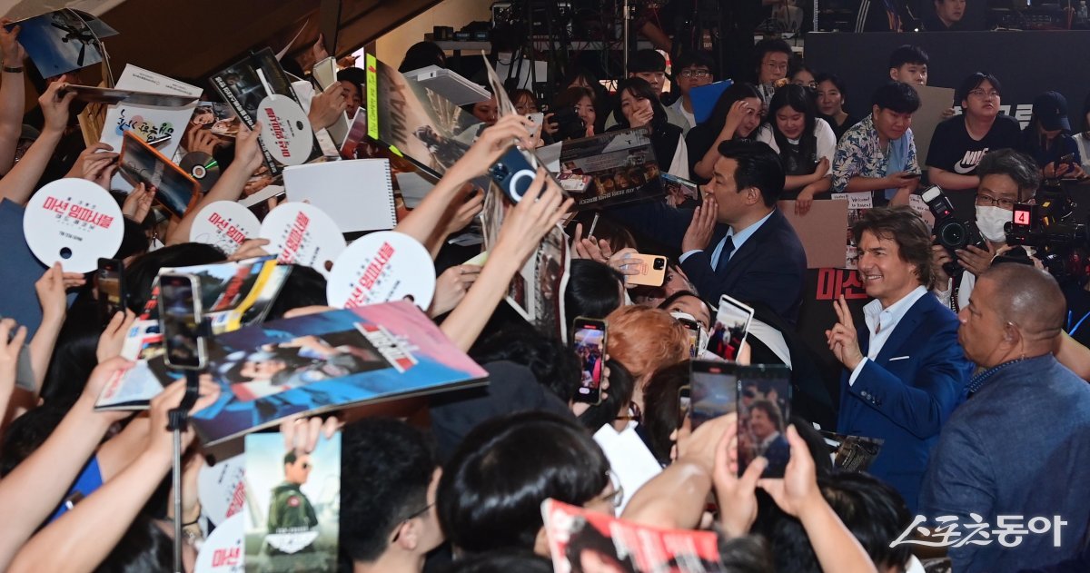 배우 톰 크루즈가 29일 서울 송파구 신천동 롯데월드타워몰에서 열린 영화 ‘미션 임파서블: 데드 레코닝 PART ONE’ 레드카펫 행사에서 포즈를 취하고 있다.