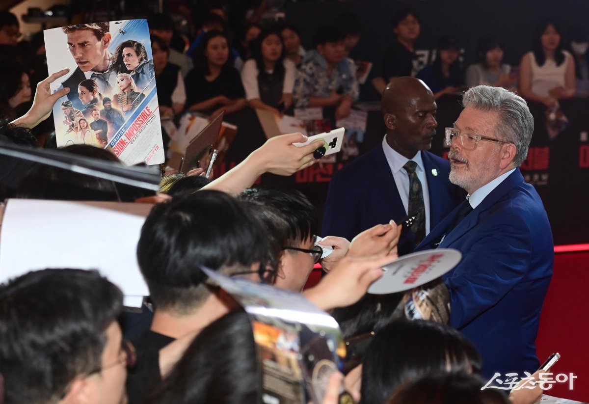 감독 크리스토퍼 맥쿼리가 29일 서울 송파구 신천동 롯데월드타워몰에서 열린 영화 ‘미션 임파서블: 데드 레코닝 PART ONE’ 레드카펫 행사에서 팬들에게 사인을 해주고 있다.