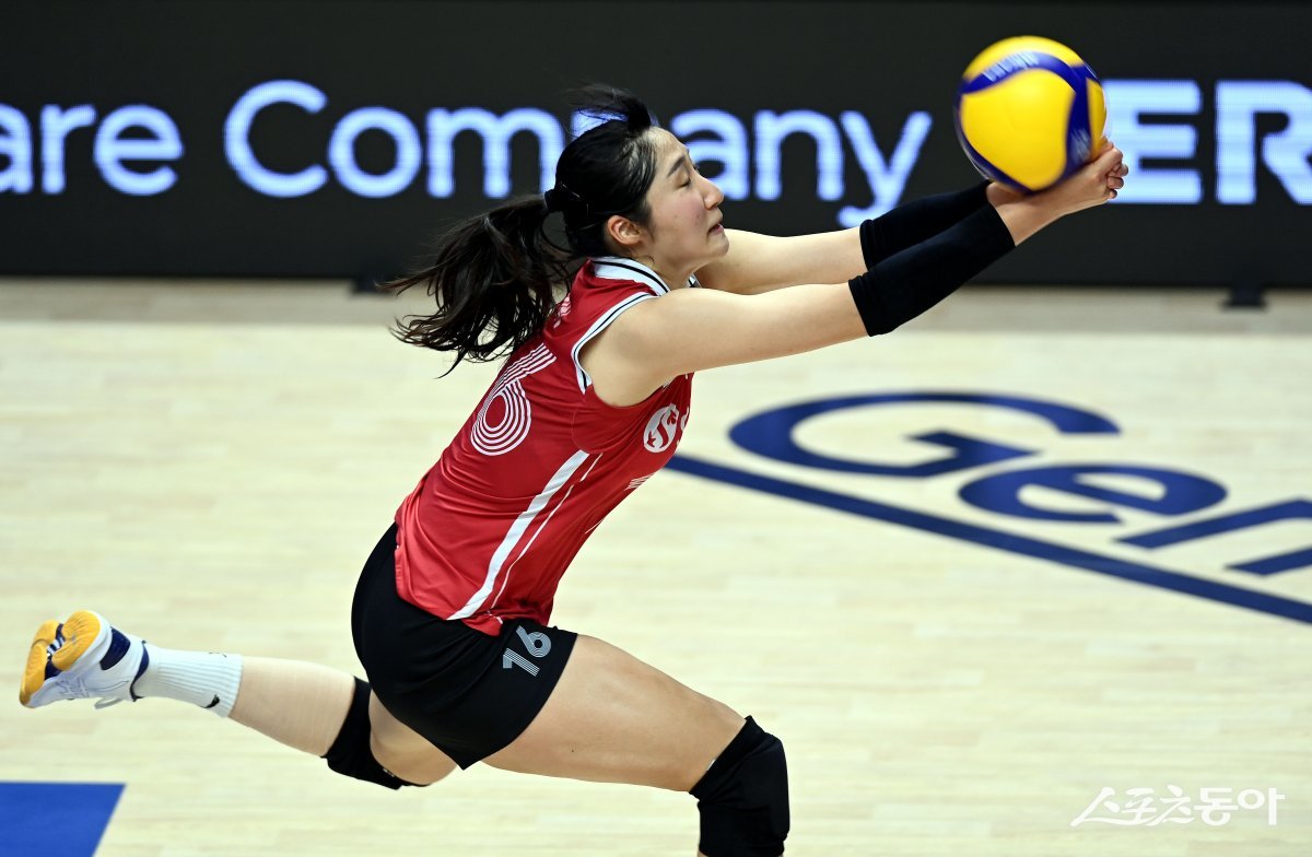 29일 경기도 서수원칠보체육관에서 ‘2023 국제배구연맹(FIVB) 발리볼네이션스리그(VNL)’ 한국과 도미니카공화국의 경기가 열렸다. 한국 정지윤이 수비를 펼치고 있다.