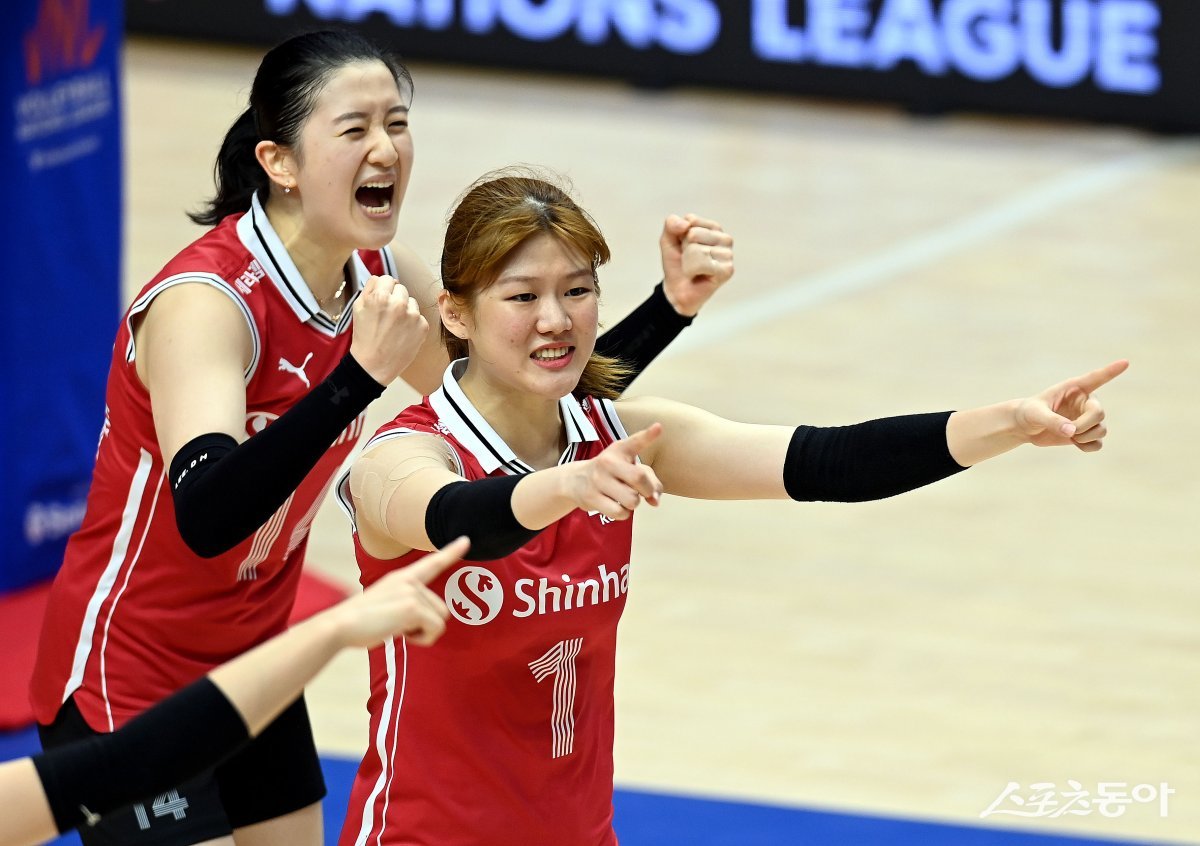 29일 경기도 서수원칠보체육관에서 ‘2023 국제배구연맹(FIVB) 발리볼네이션스리그(VNL)’ 한국과 도미니카공화국의 경기가 열렸다. 한국 이다현이 득점을 올린 후 환호하고 있다.
