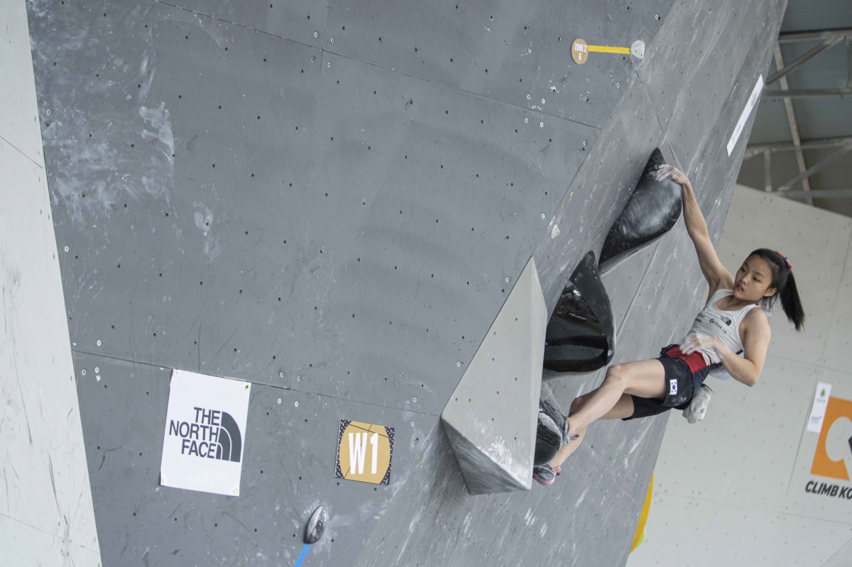 작년 노스페이스가 공식 후원한 스포츠클라이밍 아시아선수권대회에서 2관왕에 오른 서채현 선수(노스페이스 애슬리트팀)의 경기 모습. 사진제공 | 노스페이스