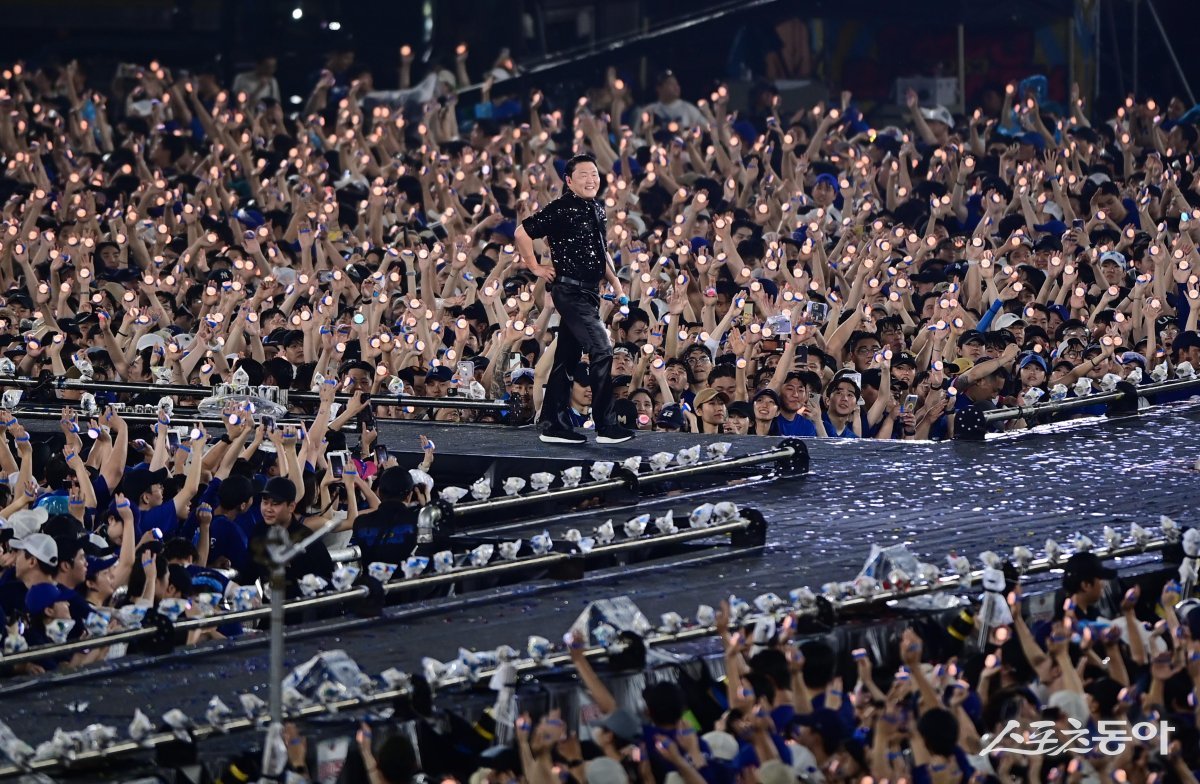 가수 싸이가 30일 서울 잠실종합운동장 올림픽주경기장에서 열린 ‘싸이흠뻑쇼 SUMMER SWAG 2023’에서 공연을 하고 있다.
