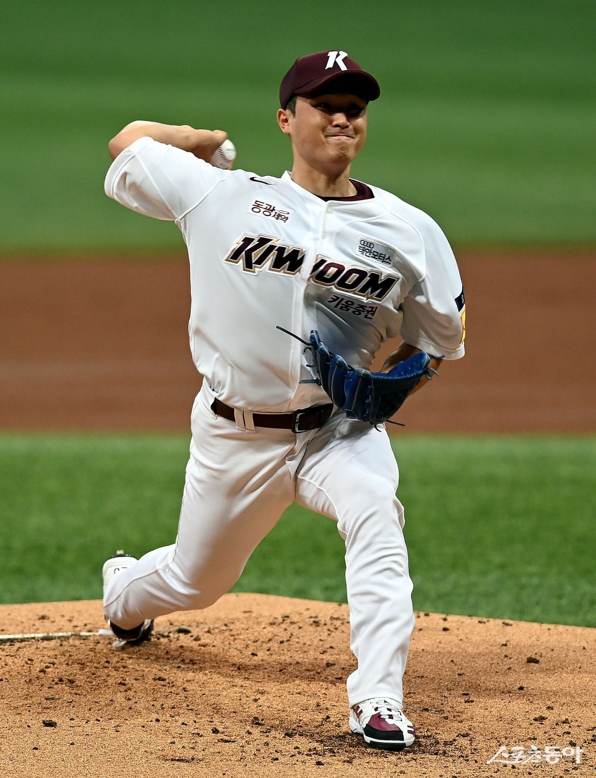 2일 서울 고척스카이돔에서 ‘2023 신한은행 SOL KBO리그’ 키움 히어로즈와 SSG 랜더스의 경기가 열렸다. 키움 선발투수 최원태가 힘차게 볼을 던지고 있다.