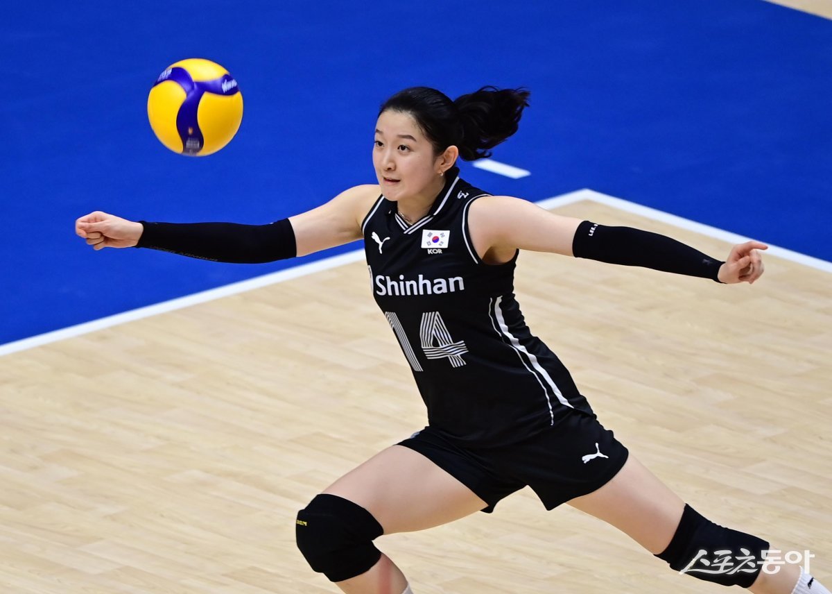 2일 경기도 서수원칠보체육관에서 ‘2023 국제배구연맹(FIVB) 발리볼네이션스리그(VNL)’ 한국과 폴란드의 경기에서 한국 이다현이 디그를 하고 있다.