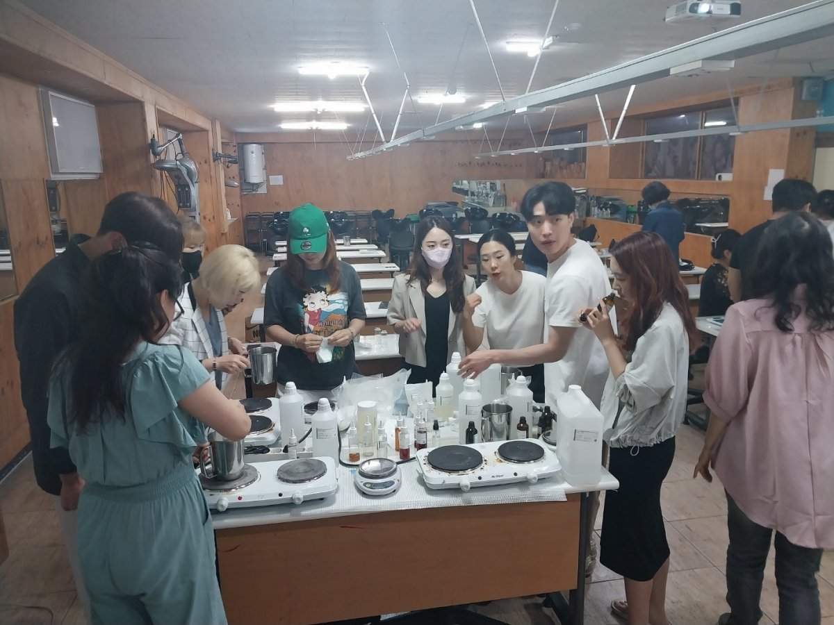 대구공업대학교 헤어디자인과 창업동아리 毛두毛아가 최근 회원 22명이 화장품제조 전문가 황예지 교수의 ‘맞춤 화장품원료에 관한 이해와 제조’에 관한 특강을 들은 후 폼 클렌징 화장품과 샴푸를 직접 제조하는 프로그램을 진행했다고 4일 밝혔다.