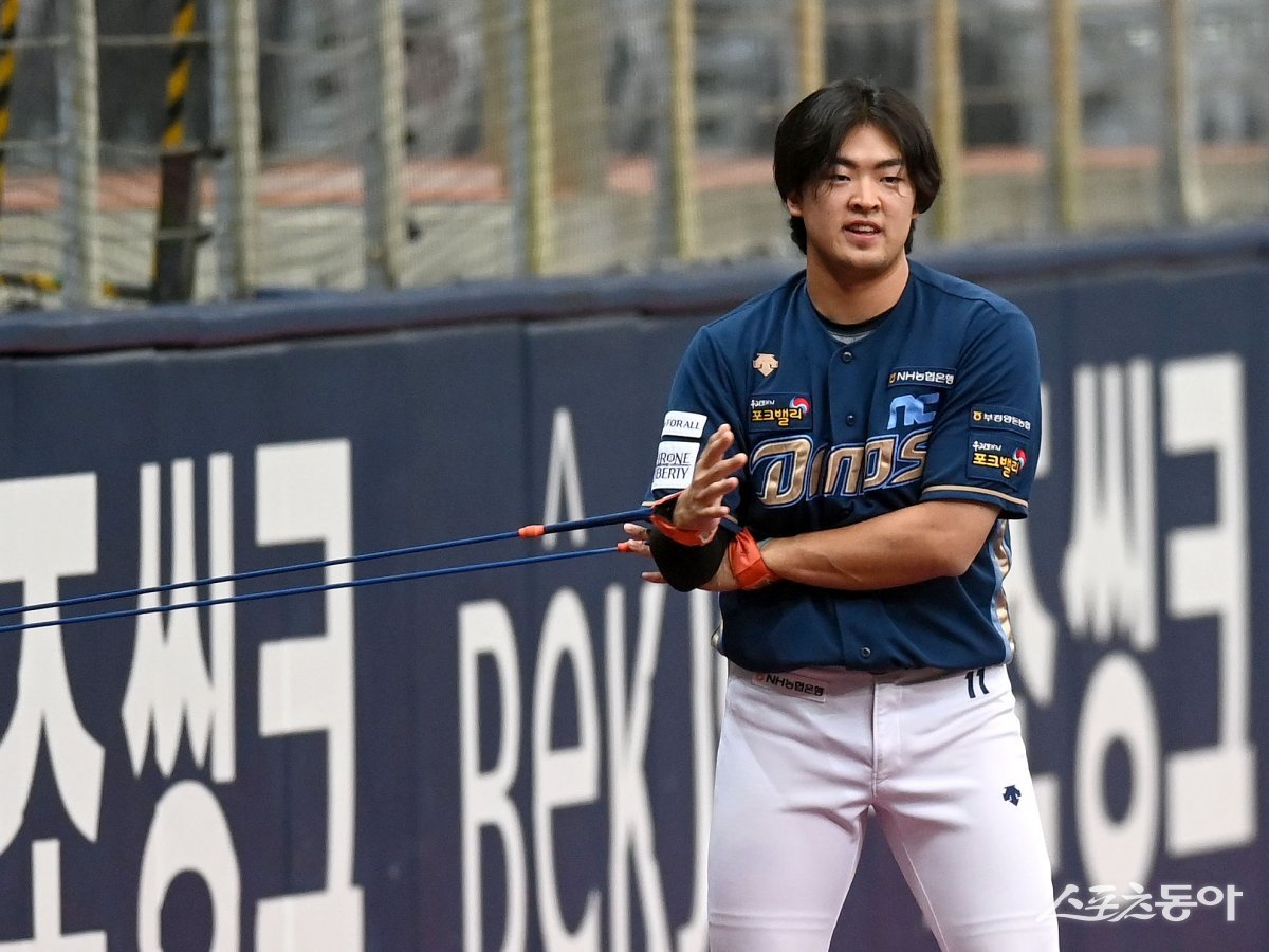 5일 서울 고척 스카이돔에서 ‘2023 신한은행 SOL KBO리그’ NC 다이노스와 키움 히어로즈 경기가 열린다. NC 송명기가 훈련을 하고 있다.