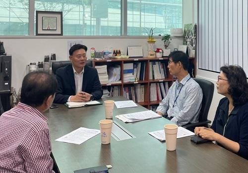 최종현 경기도의회 보건복지위원장(더불어민주당, 수원7)은 5일 도의회 보건복지위원장실에서 김진일 경기도정신건강복지센터 가족대표단 대표 등 관계자와 정신장애인과 가족의 복지증진을 위한 현안 정담회를 가졌다.