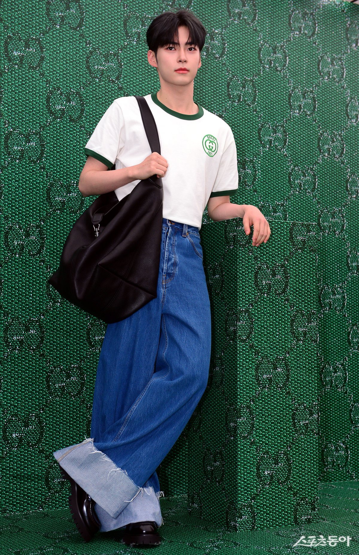 제로베이스원 한빈이 6일 서울 용산구 이태원에서 열린 명품 브랜드 포토 행사에 참석해 포즈를 취하고 있다.